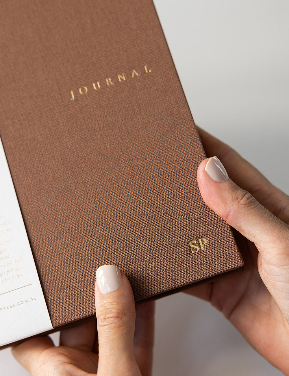 Our new beautiful linen bound journal features gold foil printing, gold gilded edges, decorative internal covers, satin ribbon markers and two hundred heavyweight pages printed on chlorine-free pure wood fibre paper.