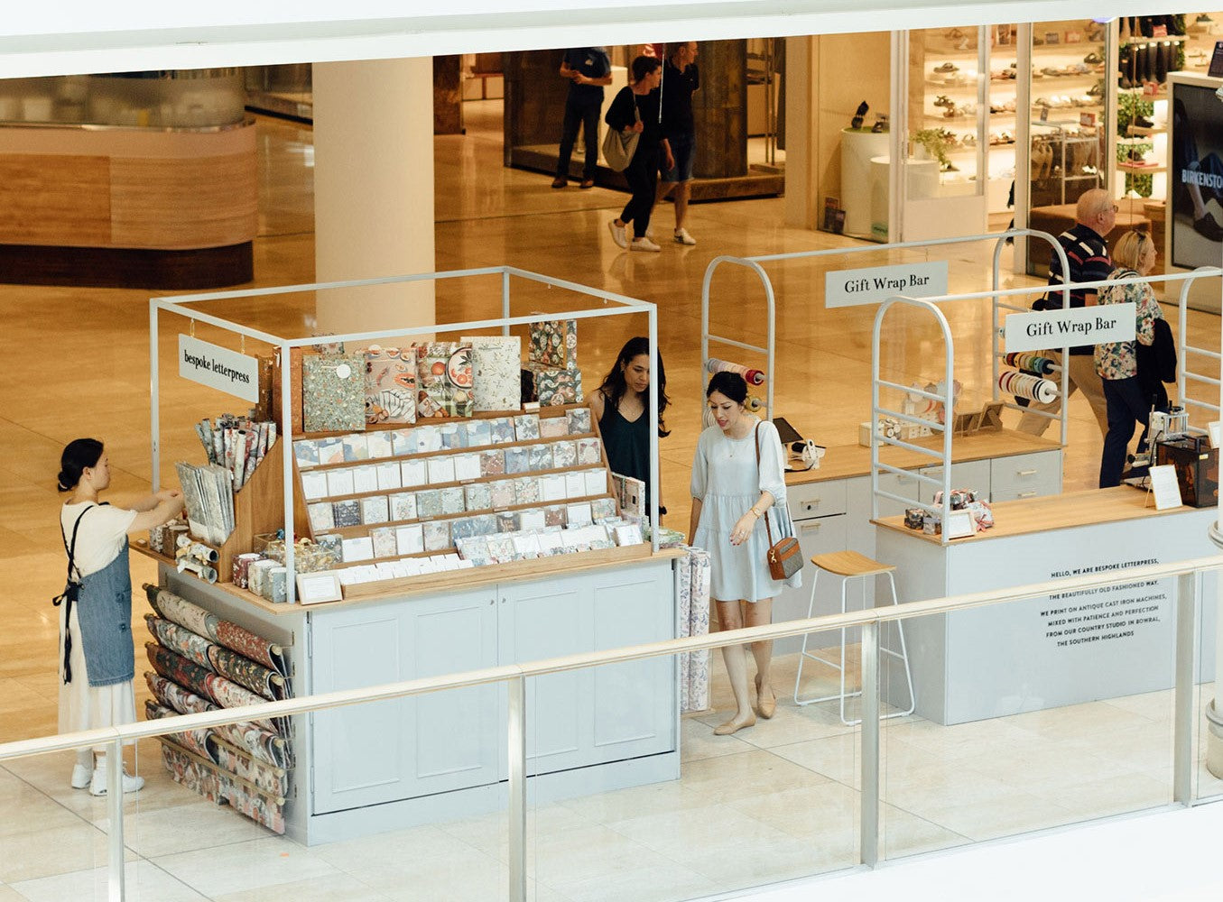 Located on Level 1, near Apple, our premium kiosk style store is a stunning evolution of our brand that showcases our signature design aesthetic. Featuring the full collection of Bespoke Letterpress stationery and lifestyle goods, we invite you to experience the quality and uniqueness of our designs for yourself.