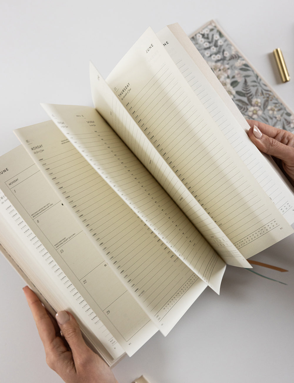 Our planners aren’t just beautifully designed, they’re deeply considered. Every element, from layout to finish, is intentionally crafted by our in-house designers with care, purpose, and attention to detail. Nothing is accidental. From the luxurious heavyweight paper to the elegant gold foil accents and thoughtfully structured pages, each feature is designed to not only look stunning but to enhance your daily life. It’s a planner that feels as good as it functions - refined, purposeful, and made to inspire all year long.