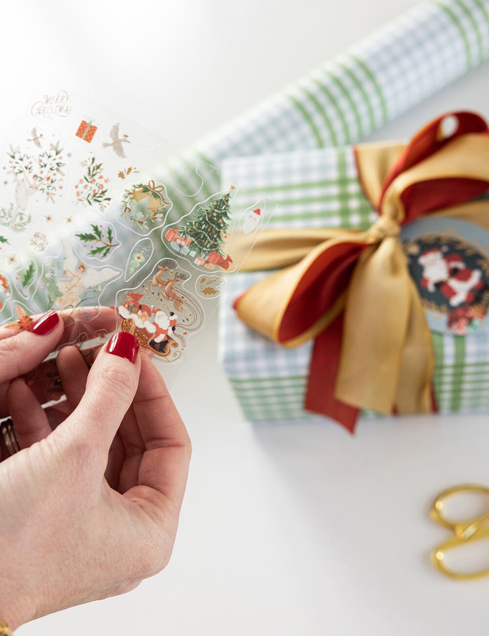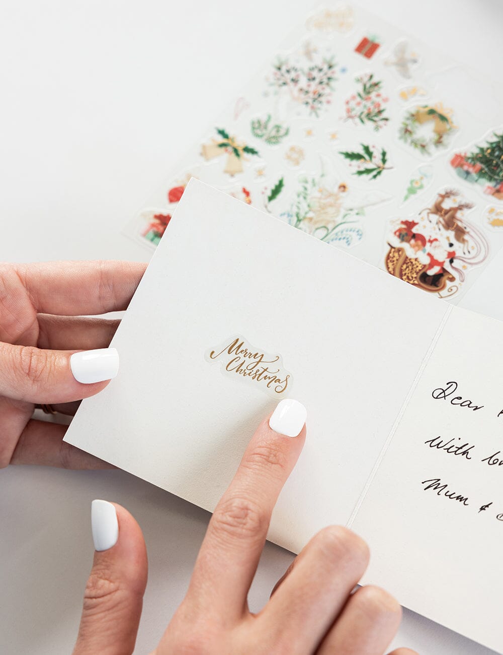"An Enchanted Christmas" gold foil accented sticker sheets are designed to bring festive charm and joy to your holiday celebrations. Whether you're decorating gift wrap, sending heartfelt cards, or adding holiday cheer to your journal, these stickers add a touch of elegance and warmth to every detail.
