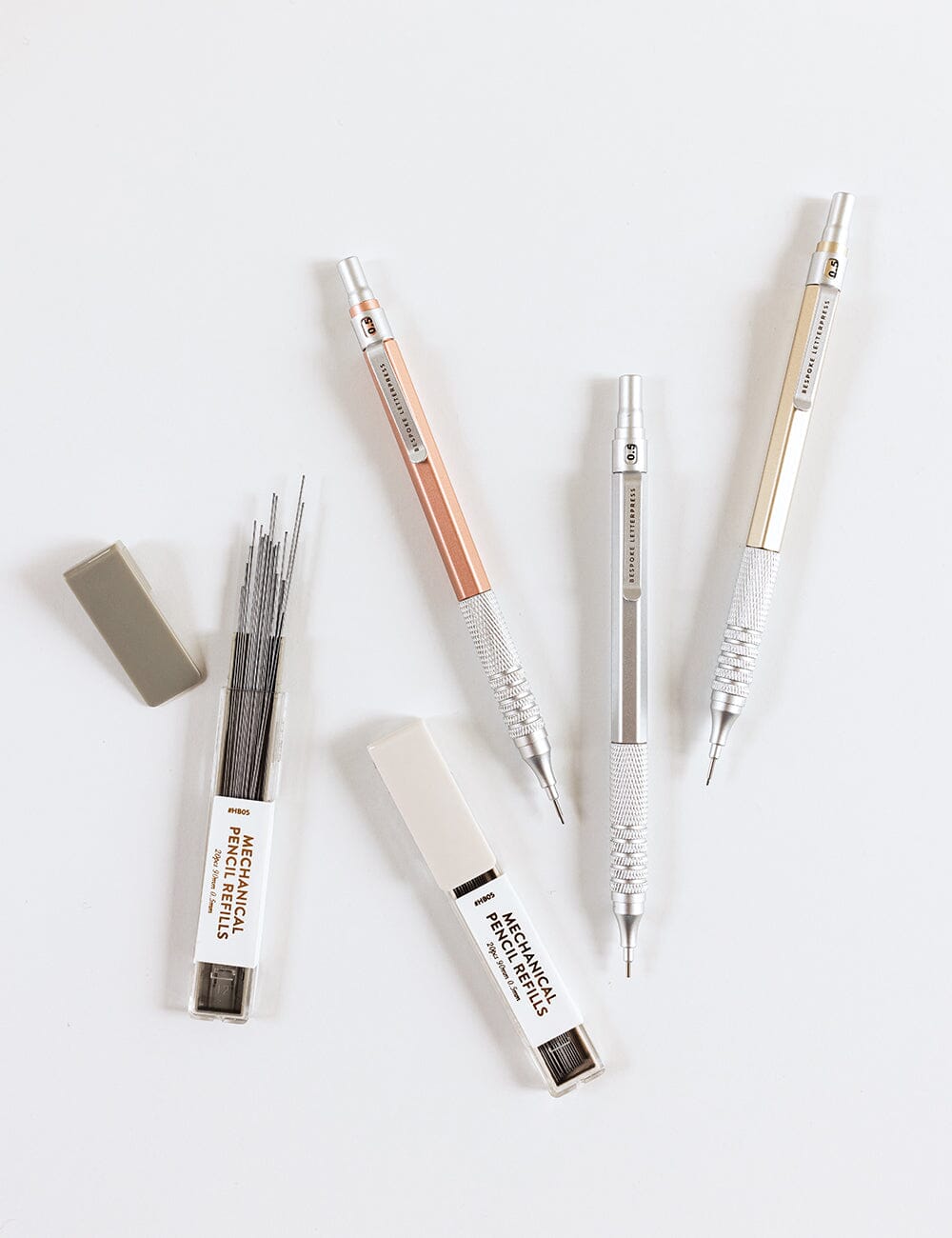 Our Bespoke Mechanical 0.5mm Pencil in Gold combines sleek design with everyday practicality. Refillable for continued use and finished with a discreet eraser on top, it’s the perfect tool for writing, sketching, or note-taking in style.