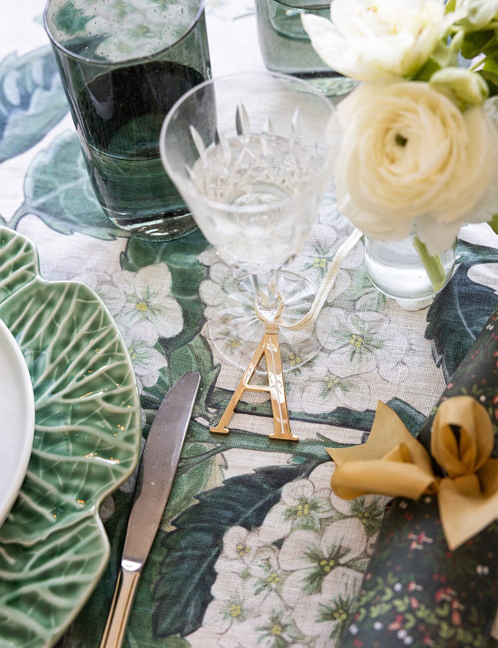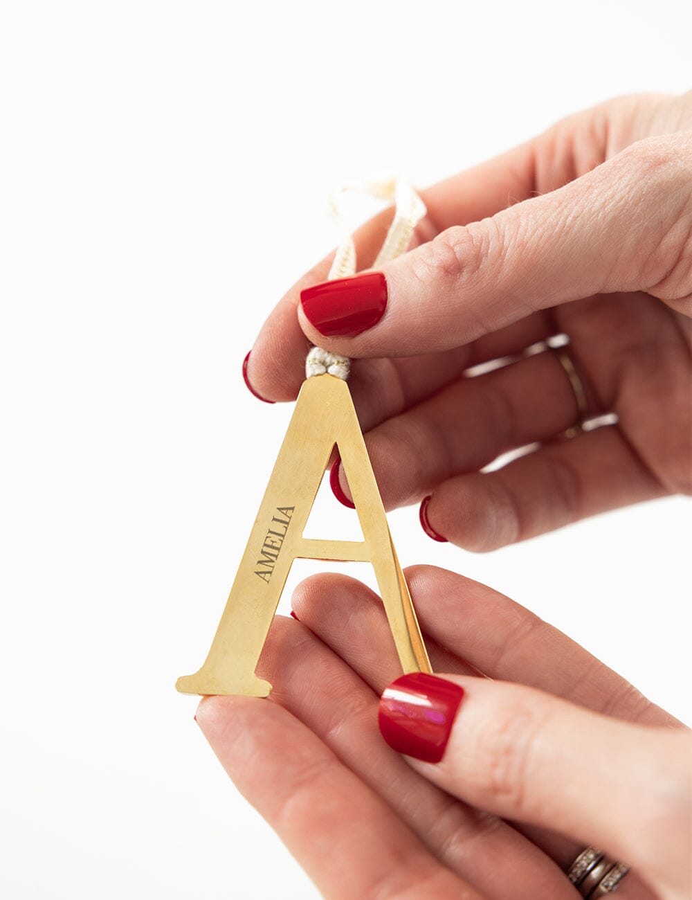 Fine enamel Alphabet ornament, complete with fine gold line ribbon.