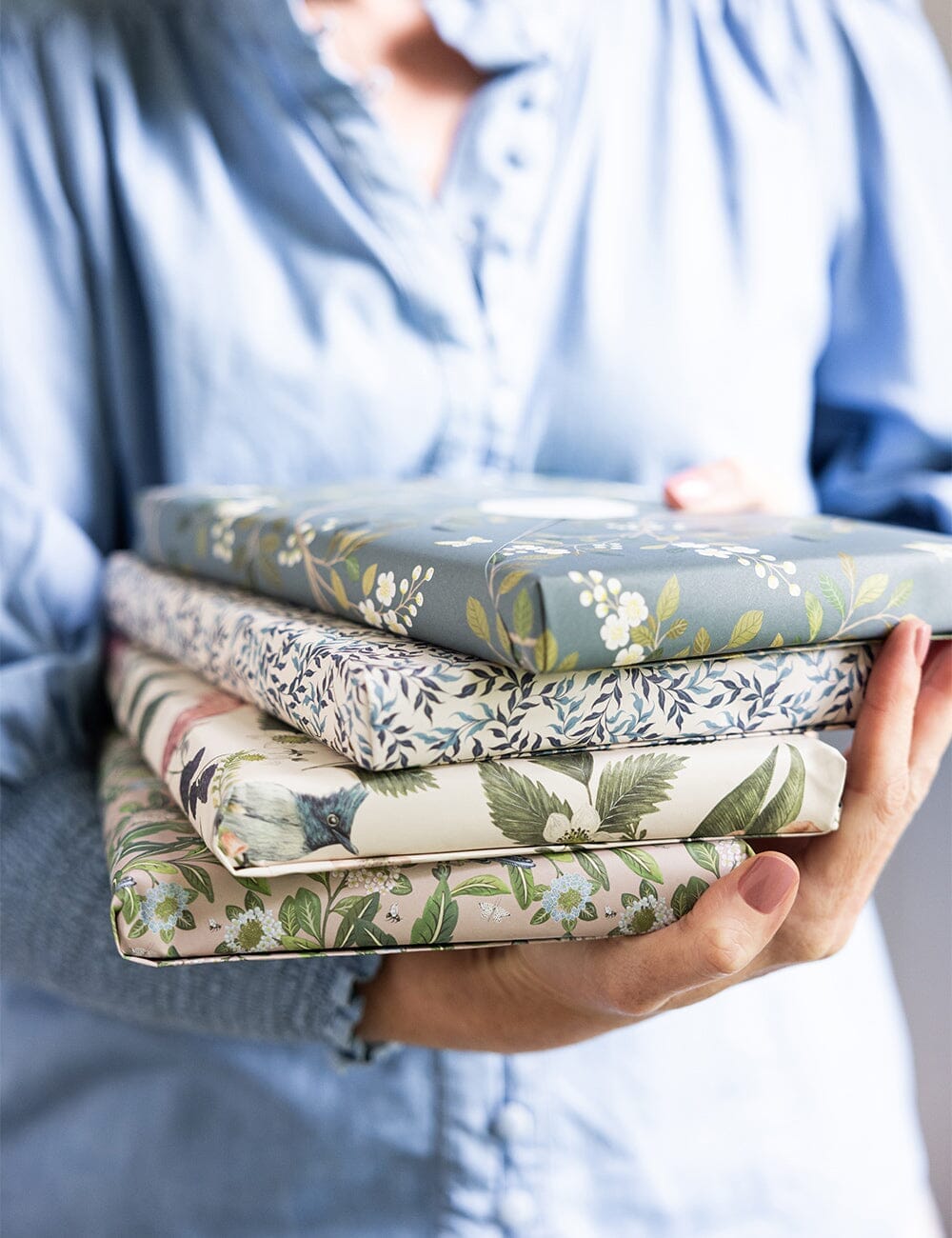 Linen Journal - 200 internal bullet pages, offset printed, two satin ribbon markers, and stunning front and back internal & external spread illustrated by Bethany Linz