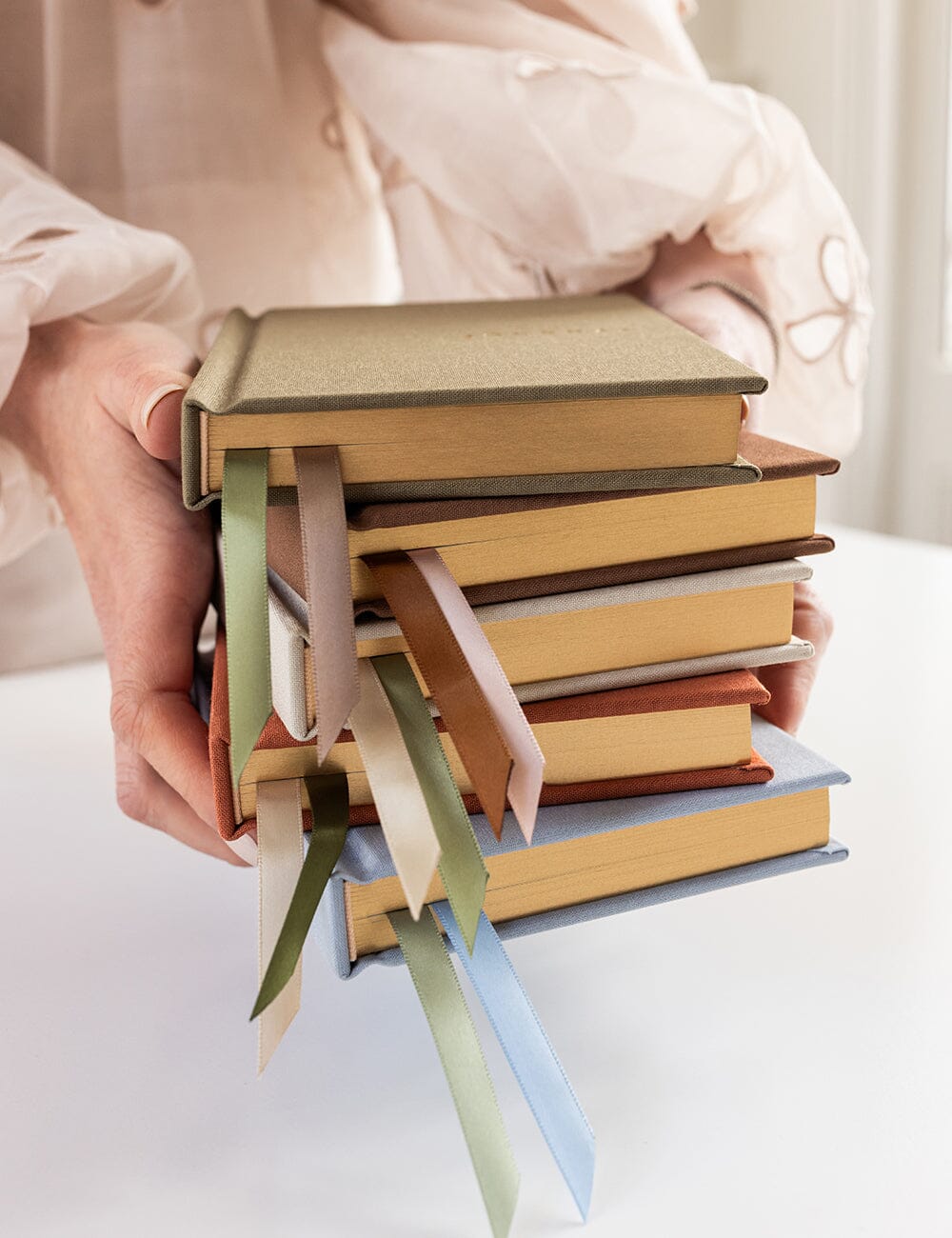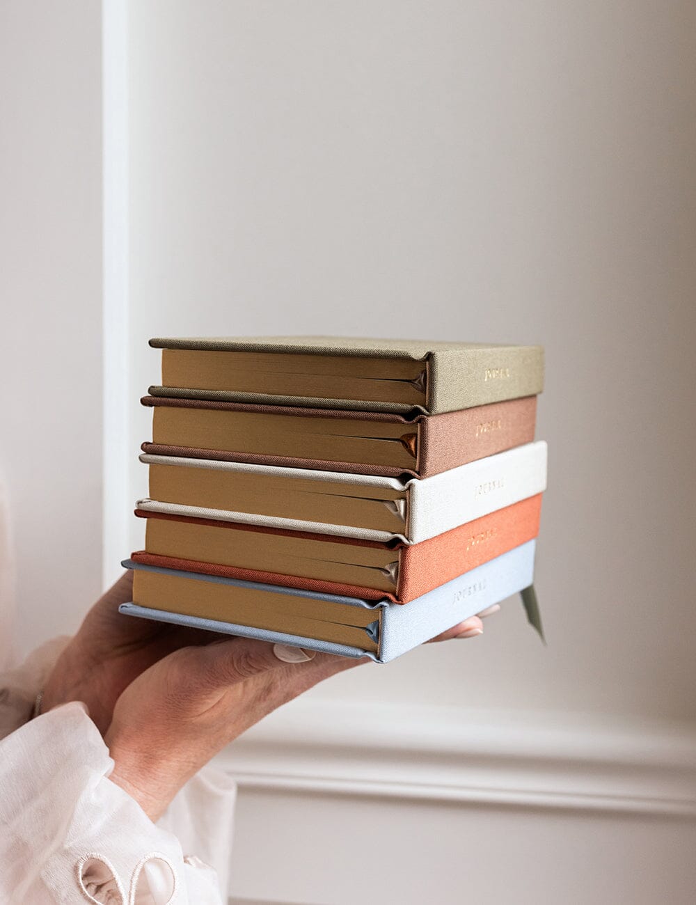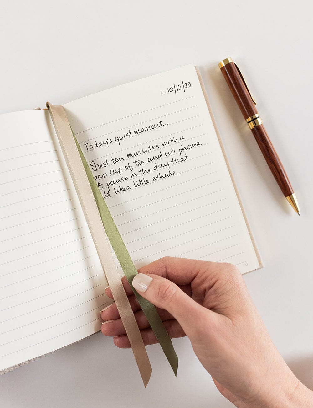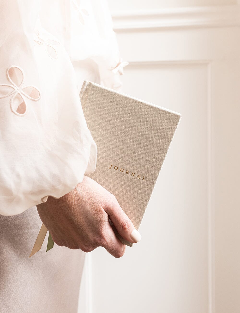 1 x Linen Journal with 200 lined pages, gold gilded edges and satin ribbons