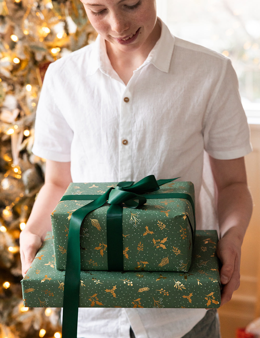 Gift Wrap Roll 30m - Golden Holly (Gold Foil)