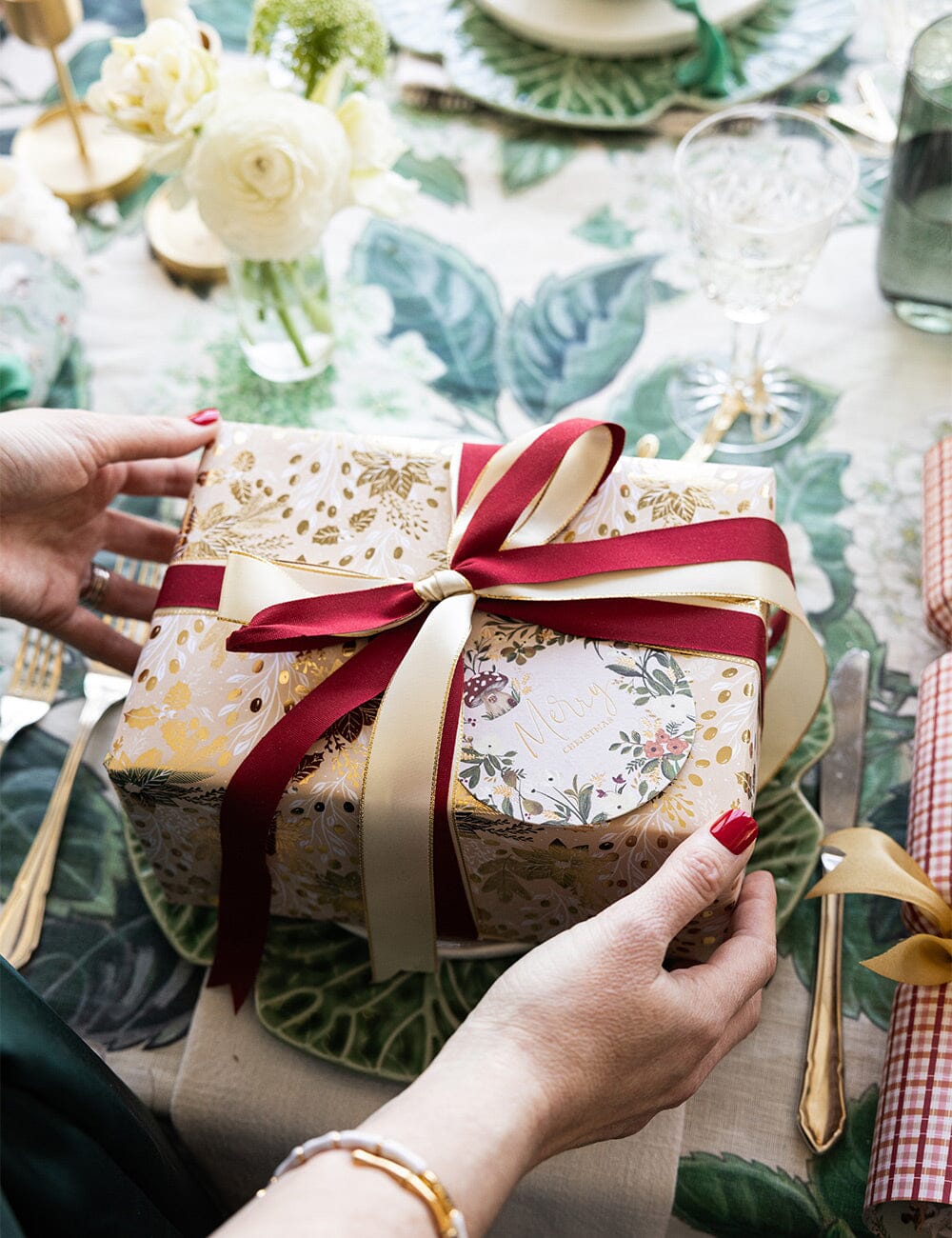Gift Wrap Roll 3m - Christmas Holly (Champagne with Gold Foil)