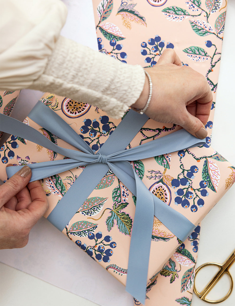 Premium Roll of single sided gift wrap available in 3m or 30m bulk counter rolls.