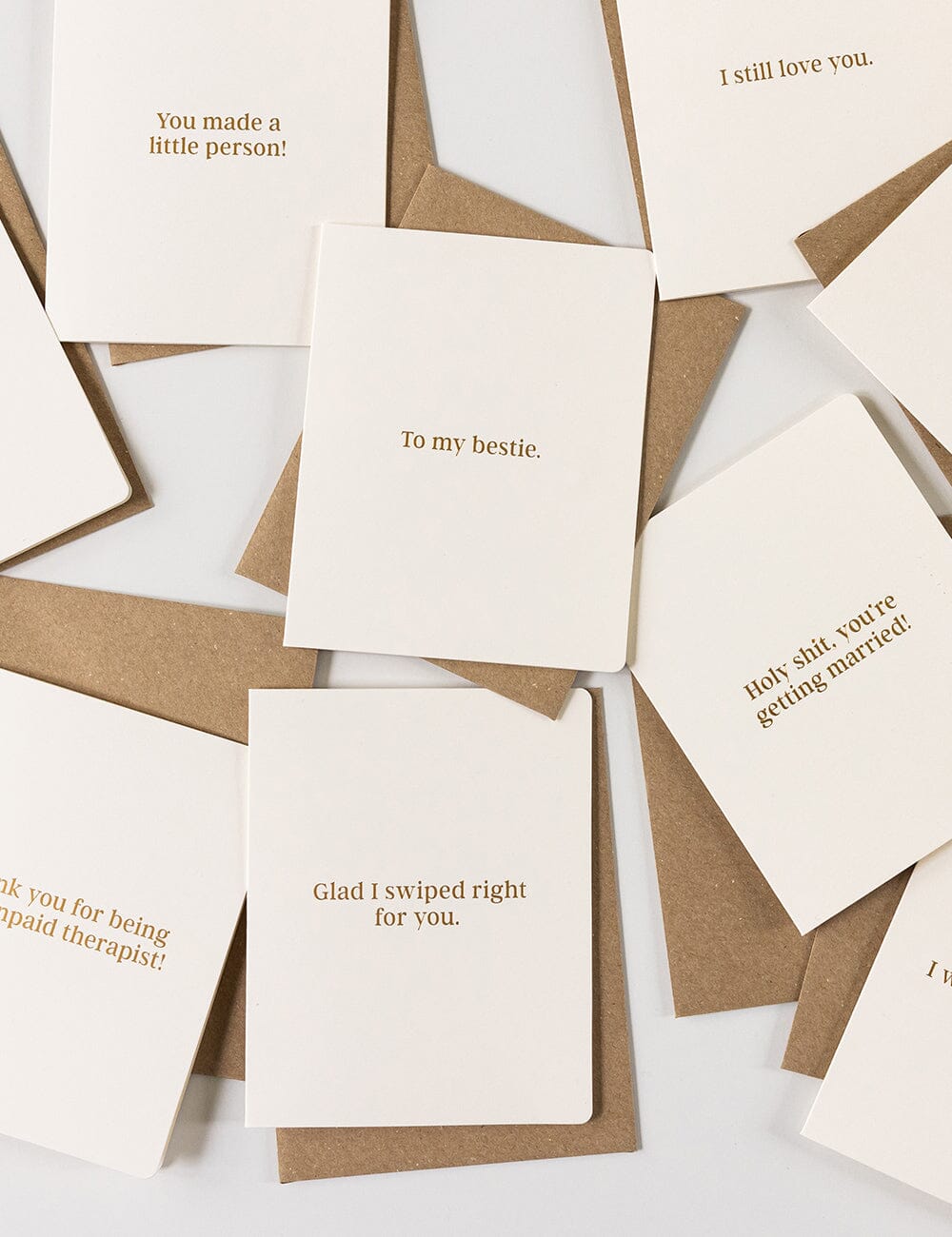 Letterpress hot foil printed "Glad I Swiped Right for You" card.