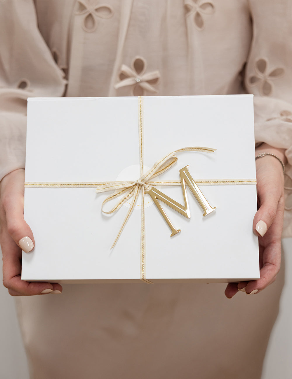 Our hampers come in a sturdy white magnetic clasp box, as shown. You can upgrade your hamper with an Alphabet Ornament and/or Christmas Gift Wrapping as optional add-ons. Upgraded hampers will be presented as shown in the product images.