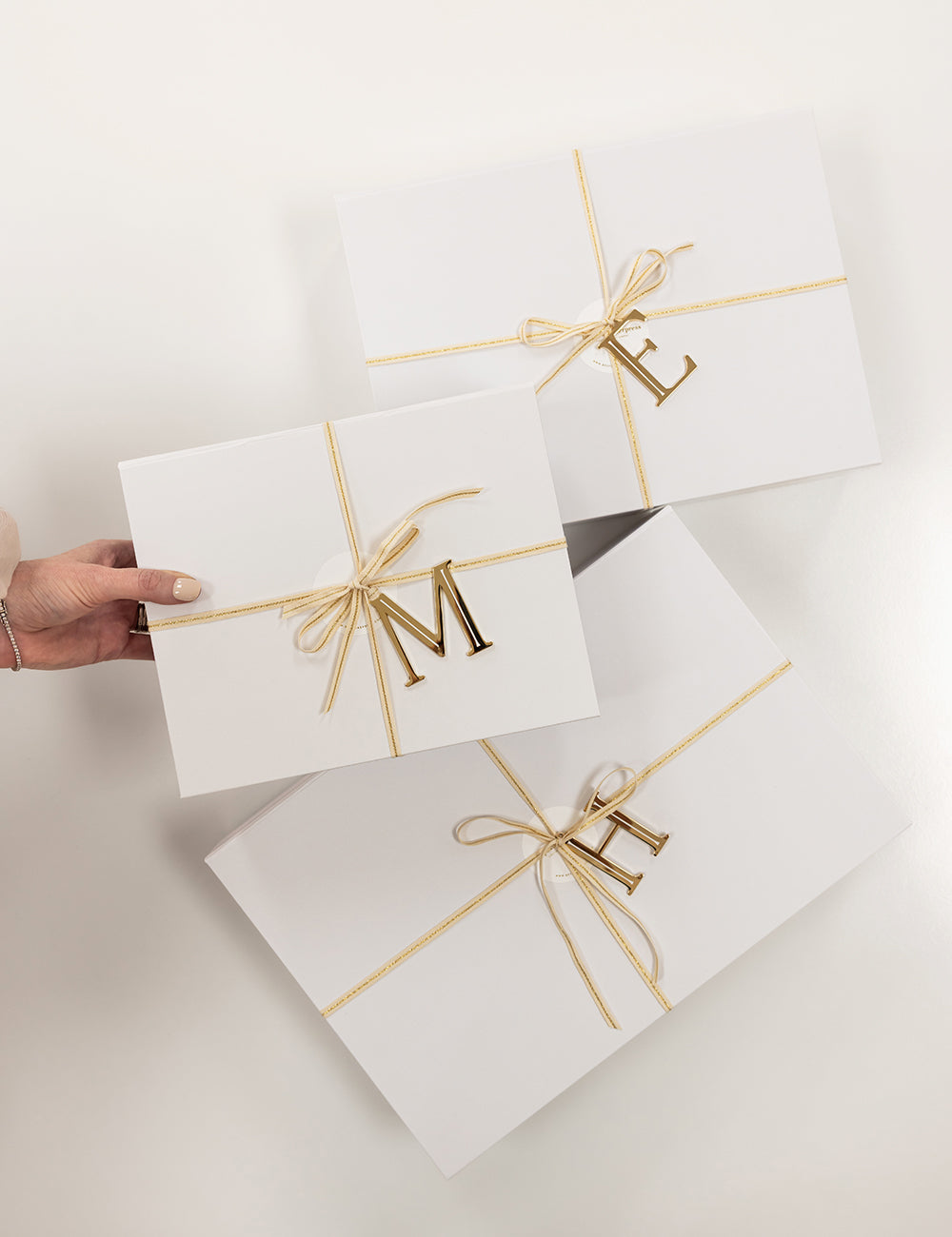 Our hampers come in a sturdy white magnetic clasp box, as shown. You can upgrade your hamper with an Alphabet Ornament and/or Christmas Gift Wrapping as optional add-ons. Upgraded hampers will be presented as shown in the product images.