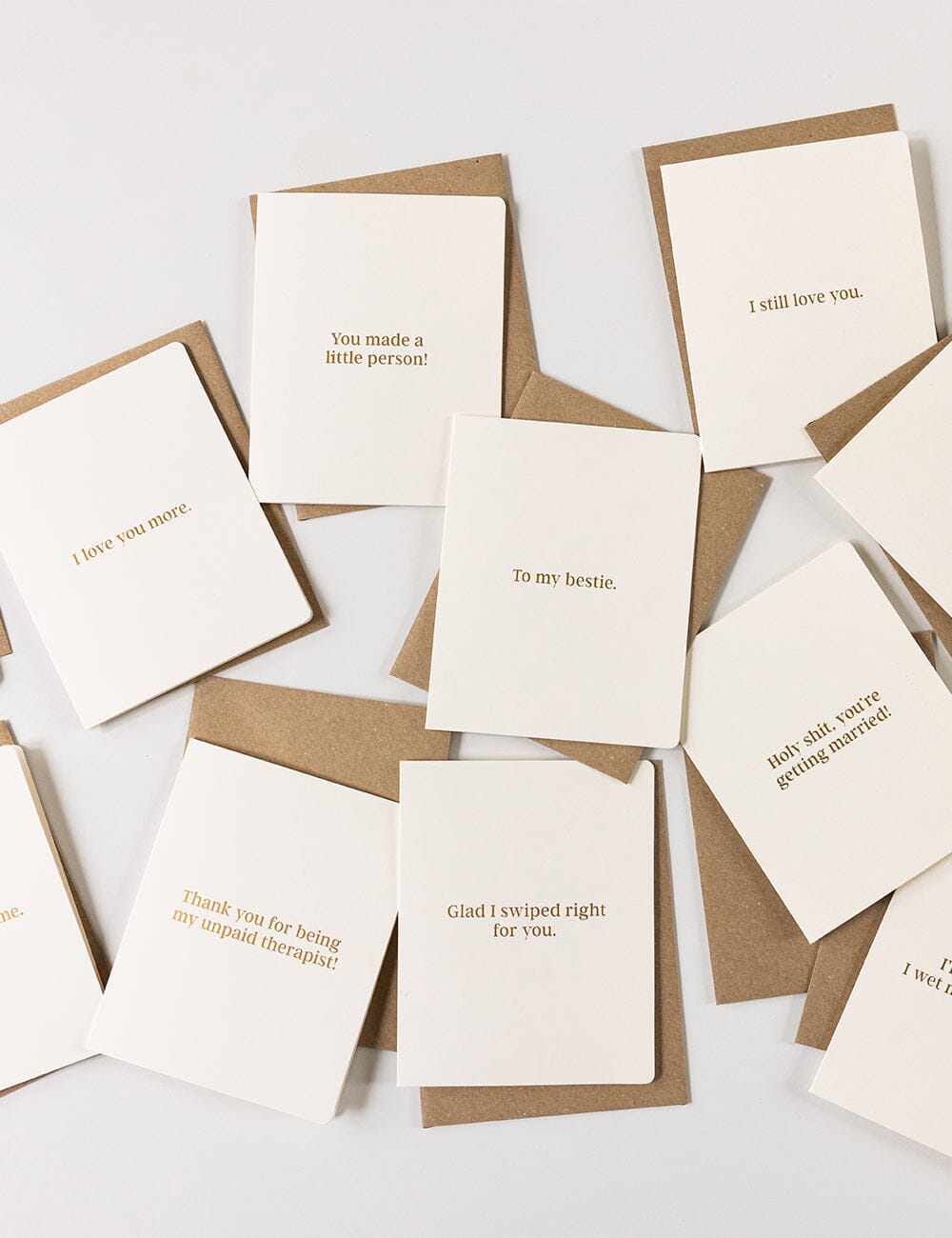 Letterpress hot foil printed "I Love You More" card.
