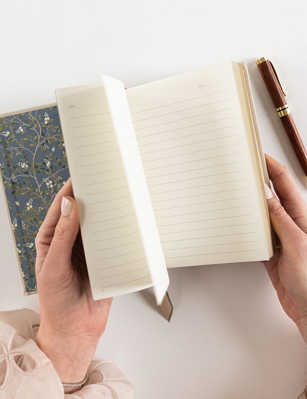 Our Pocket Journals are linen-bound, beautifully finished with gold foil and gilded edges, and designed in a compact size that’s perfect for everyday use.