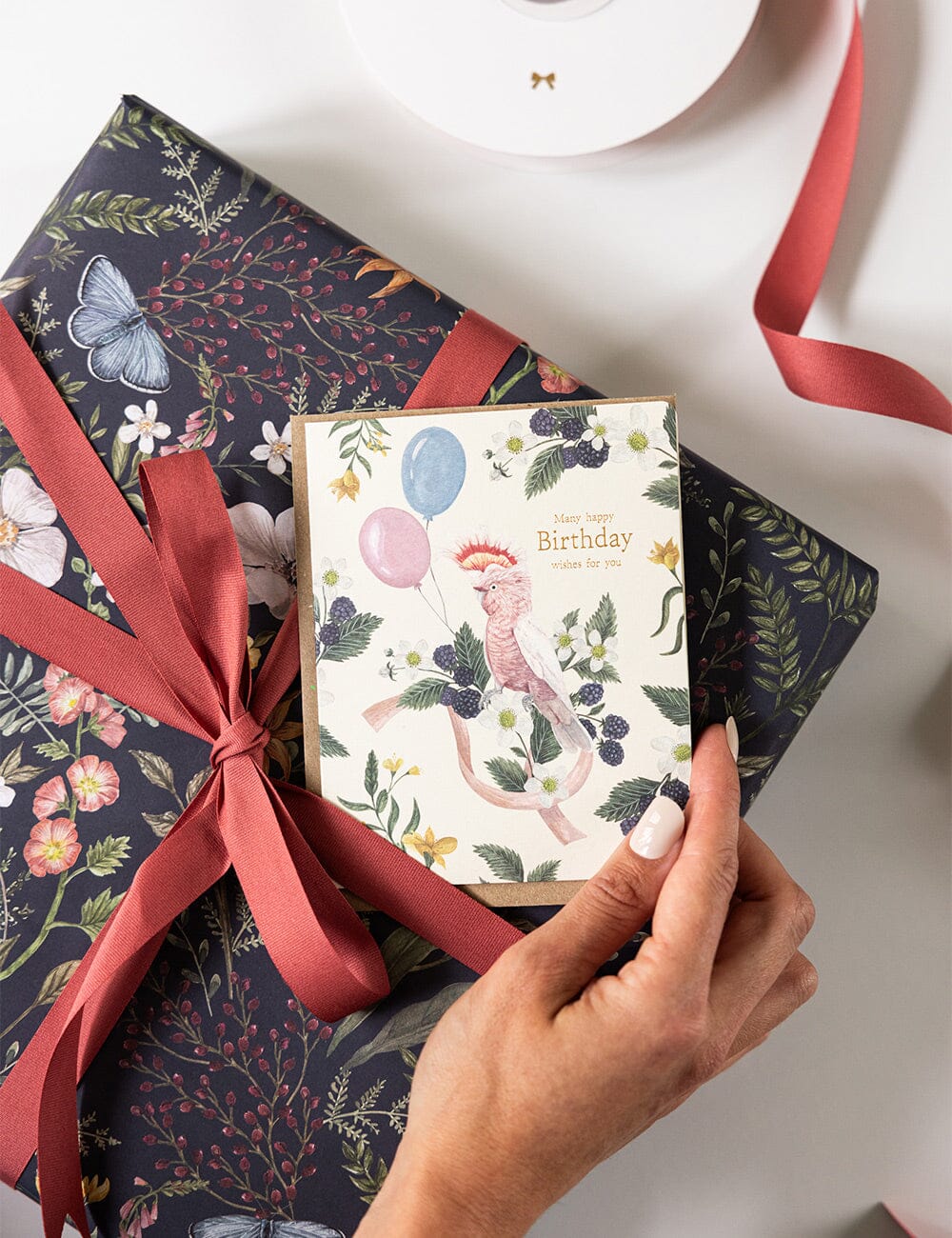 Letterpress hot foil printed greeting card "Many Happy Birthday Wishes (Cockatoo)"