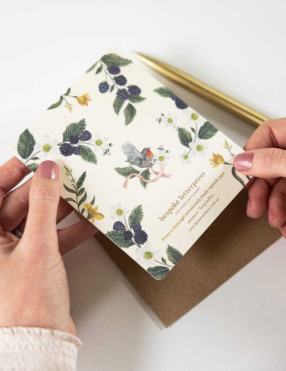 Environmentally responsible, heavyweight card stock, with Australian made kraft envelope.