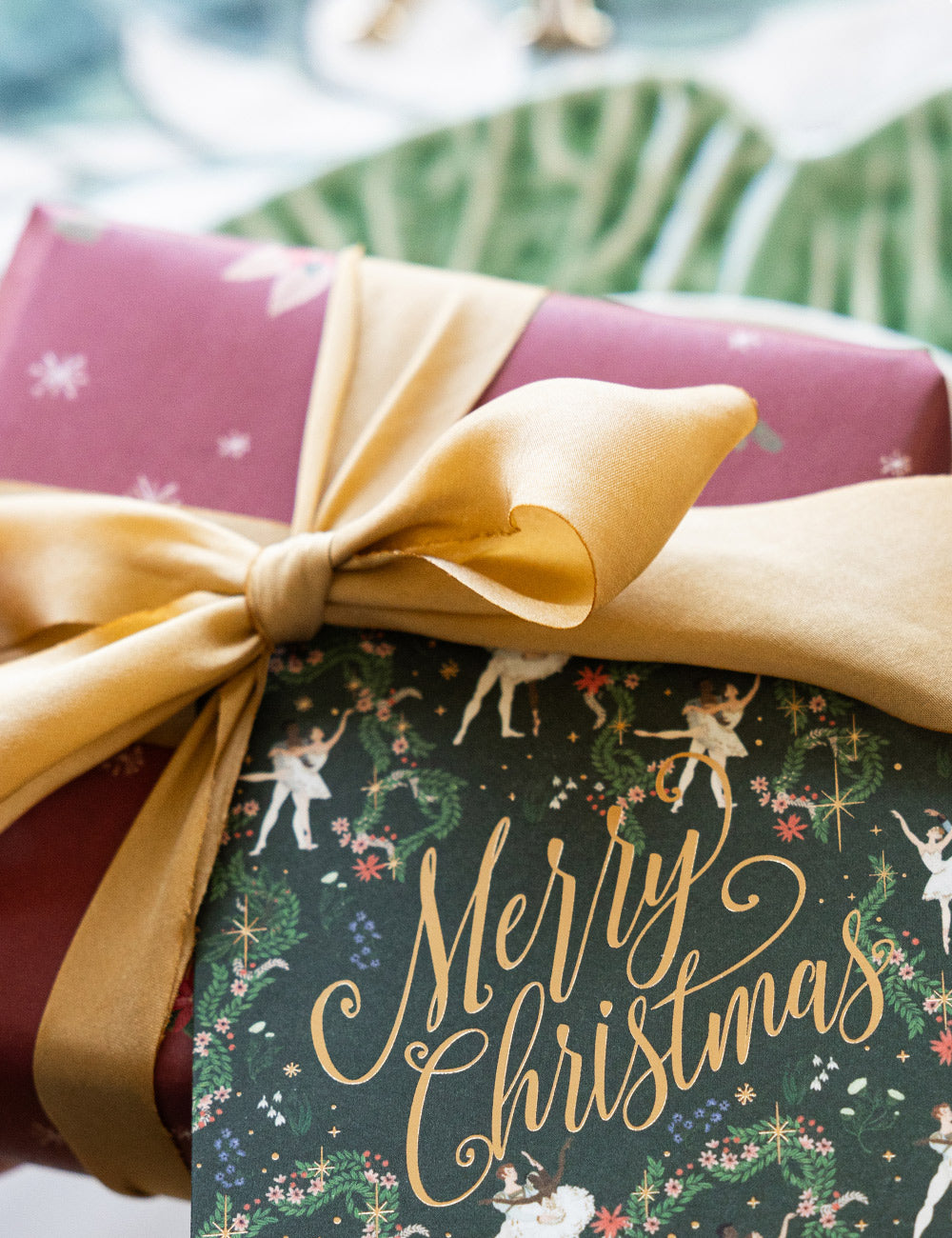 Letterpress hot foil printed small card "Merry Christmas Dancers".