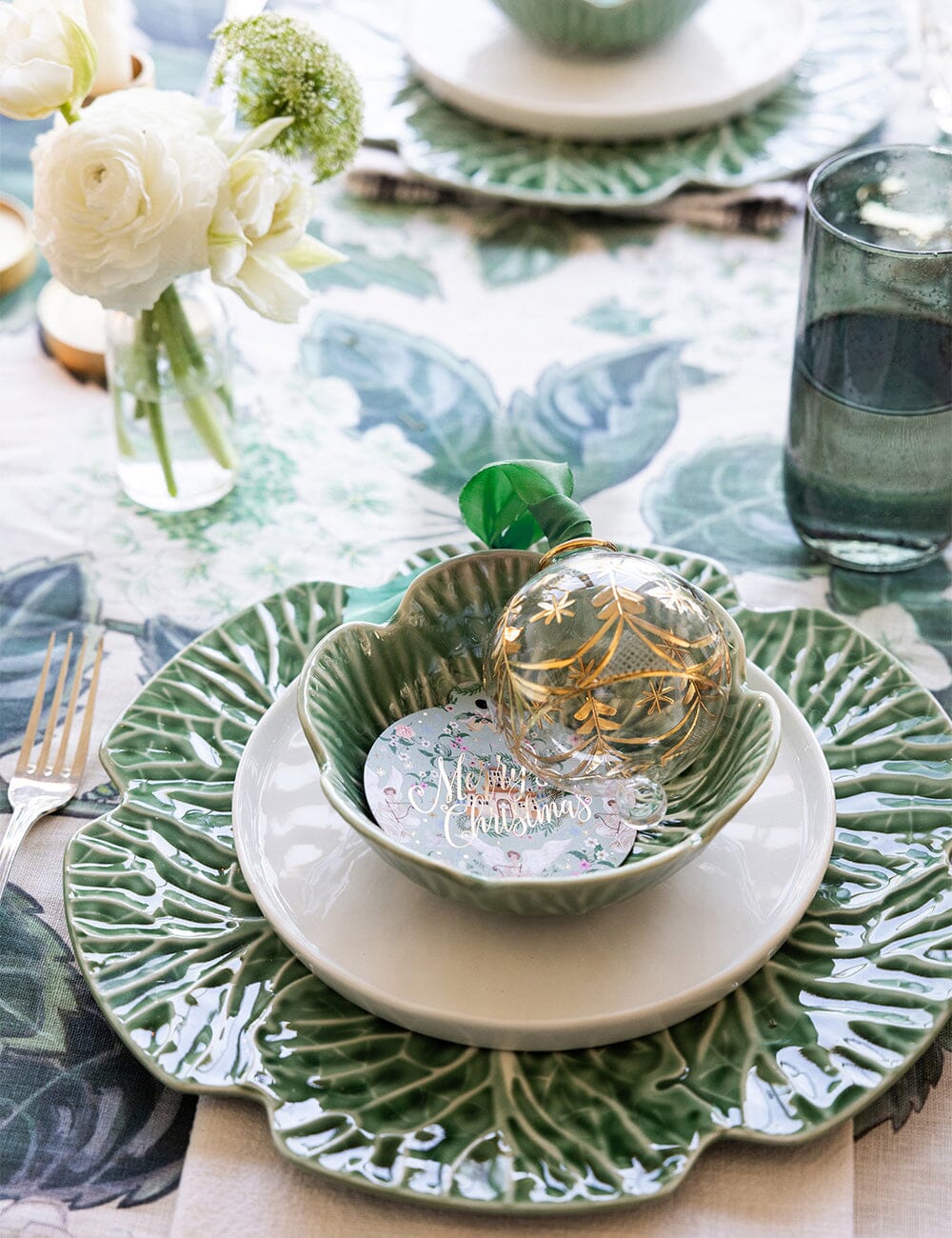 Ornament Glass Round Christmas Tree (Green Ribbon)