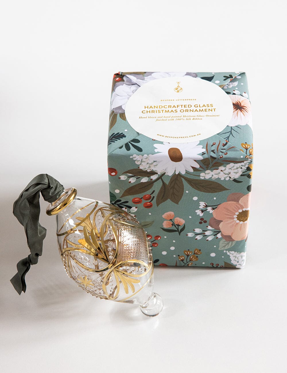 Hand blown and hand painted Heirloom Glass Ornament finished with 100% Silk Ribbon. Gift boxed ready for beautiful gifting.