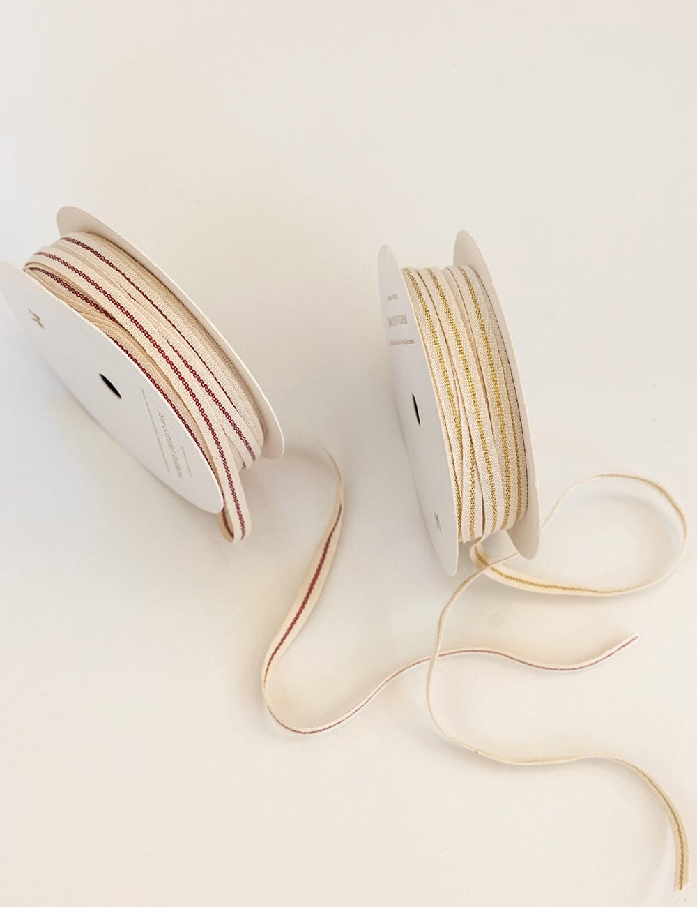 30 metres of cotton ribbon, on a gold foil printed cardboard spool.