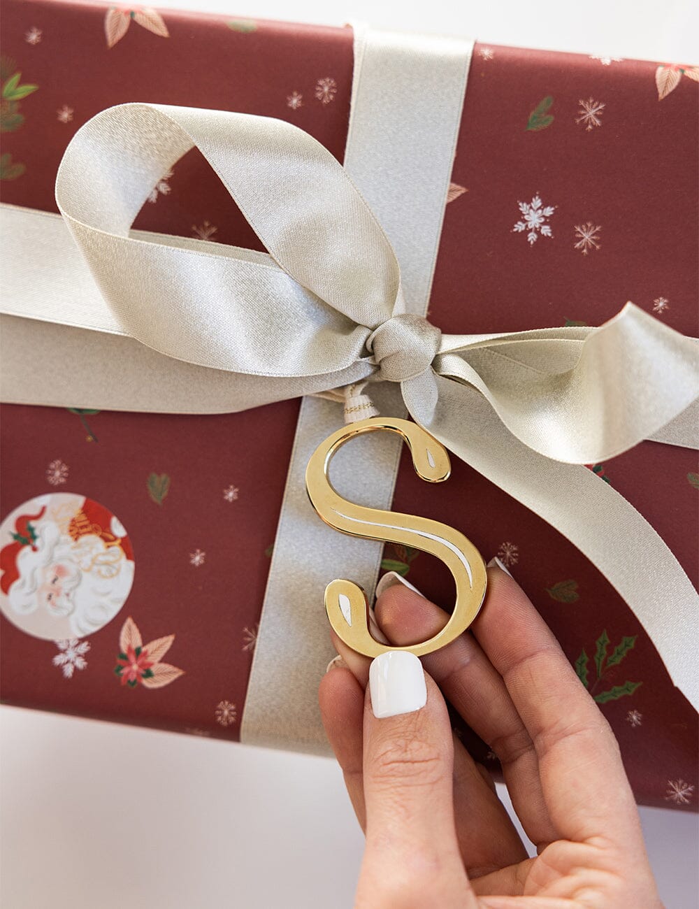 Fine enamel Alphabet ornament, complete with fine gold line ribbon.