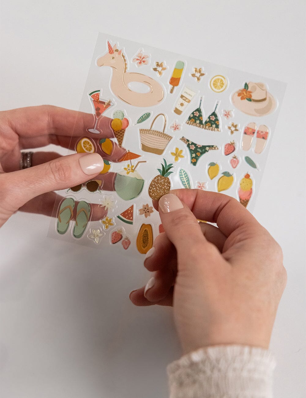 Each pack contains 1 page of stickers, which have been beautifully foil printed on clear heavyweight adhesive stock.