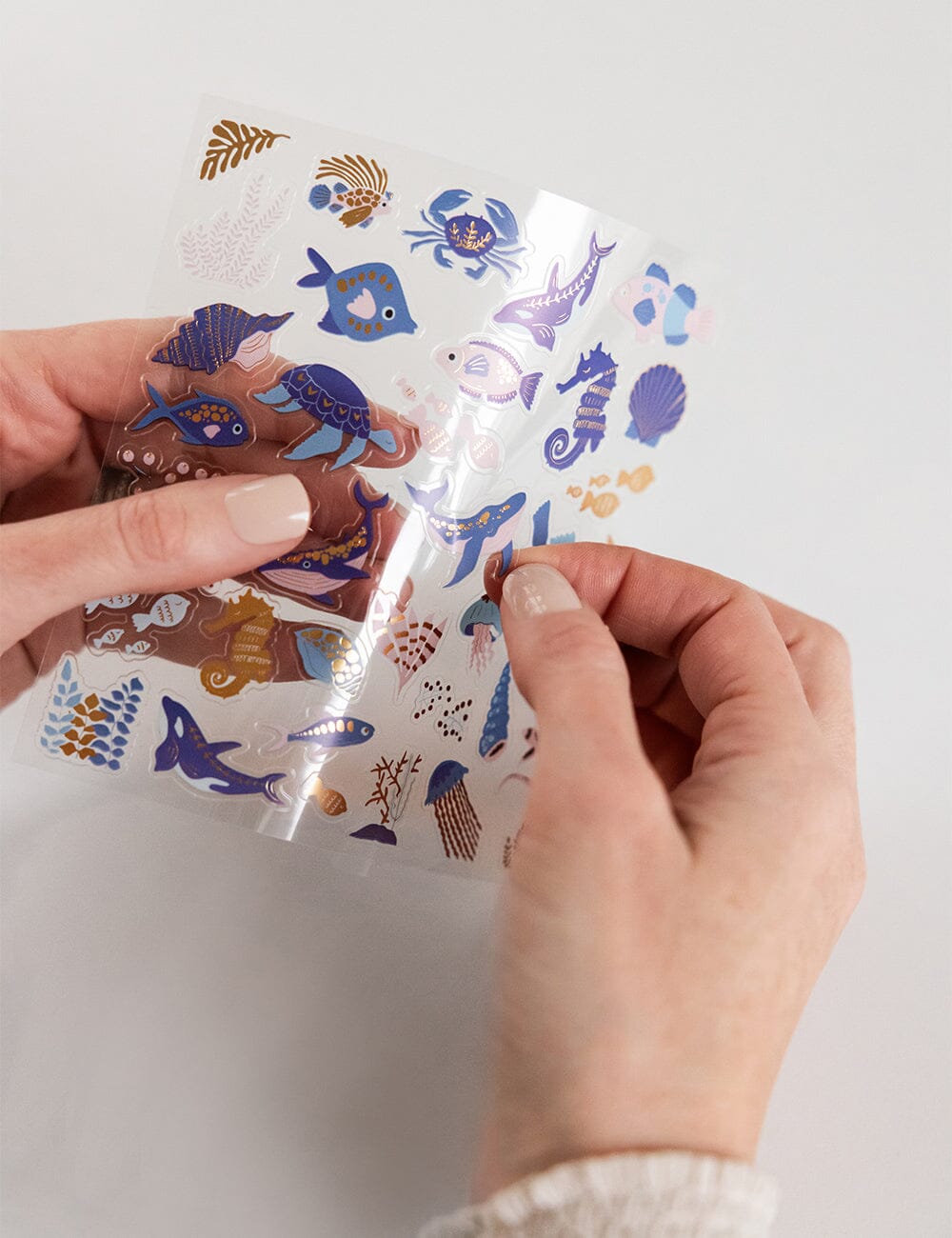 Each pack contains 1 page of stickers, which have been beautifully foil printed on clear heavyweight adhesive stock.