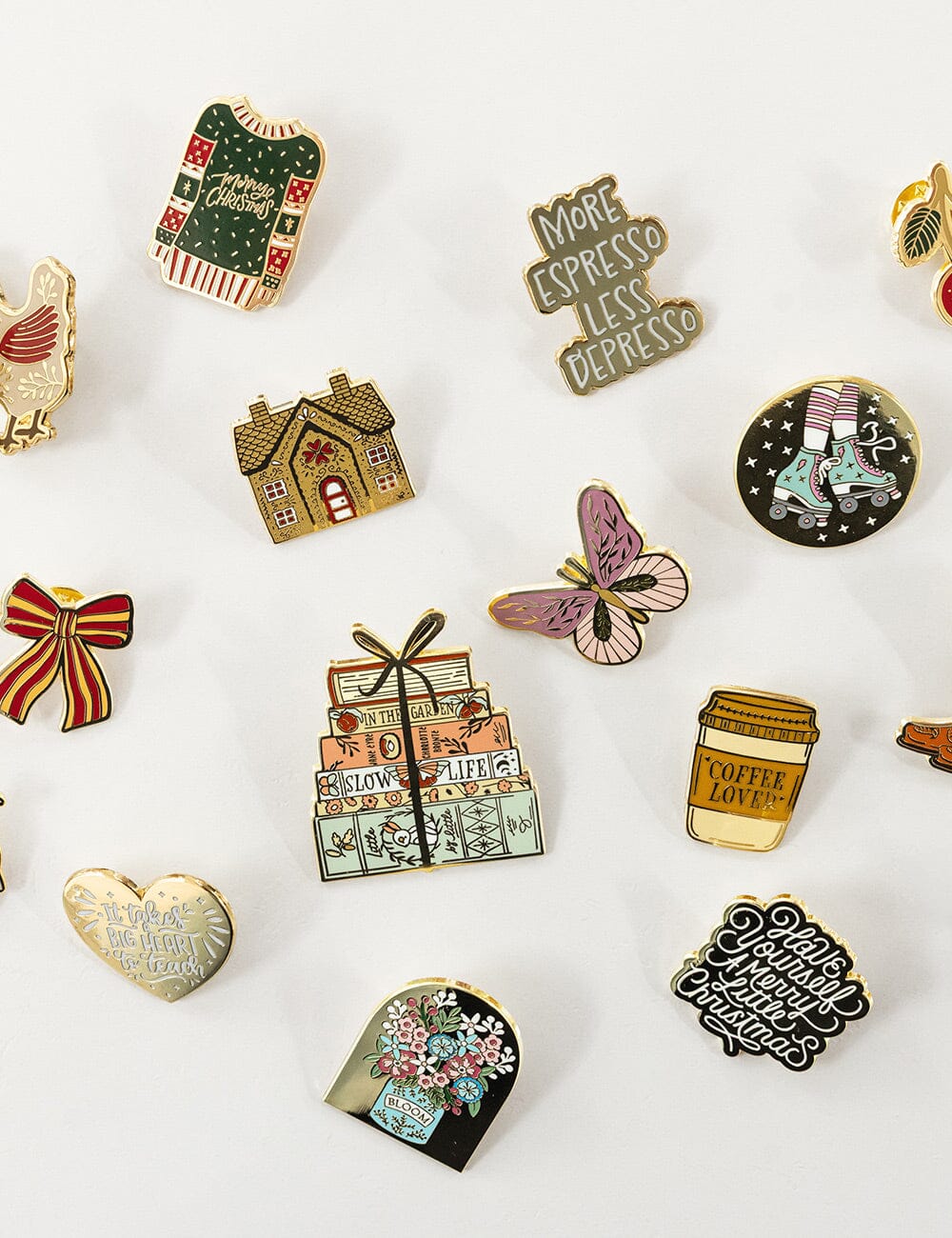 Hard fine enamel (Faux Cloisonné) pin, packaged on a gold fold card and inside of a biodegradable clear bag.