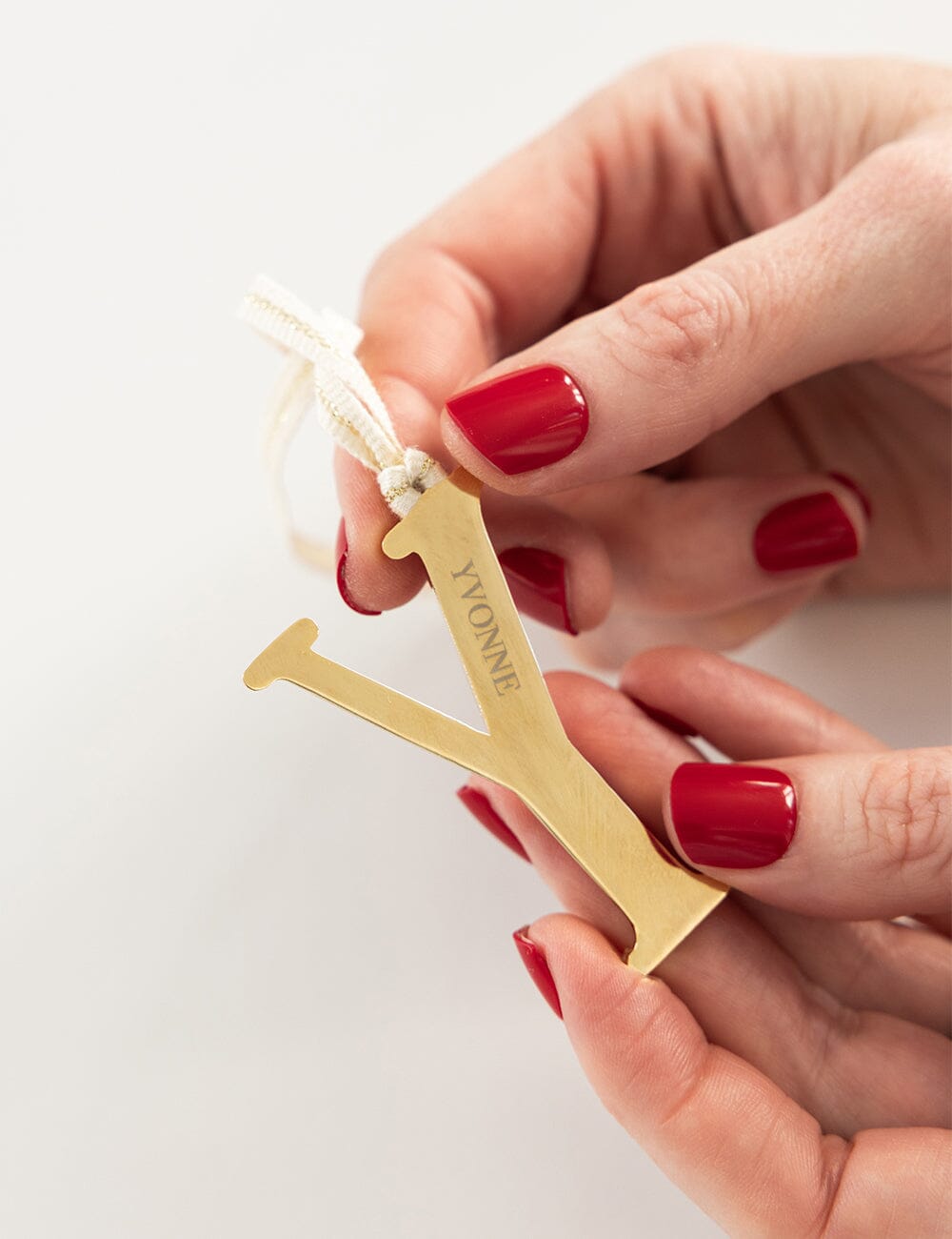 Fine enamel Alphabet ornament, complete with fine gold line ribbon.